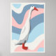 White Runner Duck Pink & Blue Waves Nursery Kids Poster