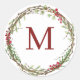 White Rustic Christmas Wreath Monogram Classic Round Sticker