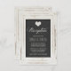 This chic vintage wedding Reception details card features a printed image of a white-washed rustic wood frame with an chalkboard look insert. The typographic style of lettering adds elegance & romance. Perfect for a vintage, rustic, or country themed wedding.