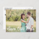 White Rustic Script Photo Save Our Date Postcard