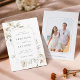 This wedding save the date invitation features watercolor illustrations of flowers in blush pink, white, and greenery with a photo on the back. For more advanced customization of this design, please click the BLUE DESIGN TOOL BUTTON above! Matching items are also available.