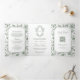 White Sage Green Chinoiserie Crest QR Code Wedding Tri-Fold Invitation