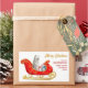On these Holiday decorative stickers, a white Samoyed dog sits in a pretty red and gold decorative sleigh. Beside the dog sits gift packages tied with colorful bows. The gold script text at the right says "MERRY CHRISTMAS" and your custom text is in red. Perfect for your Christmas correspondence or gift packages! There are many other breed images and products at Dog Village.