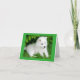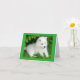 Aww who can resist the cute face of an Samoyed puppy dog? This cute canine card features a white Samoyed puppy lying in green grass highlighted with a lush green border.