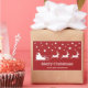 Destei's festive white silhouette design of a Santa Claus in a sleigh with reindeers pulling him forward on a red background color. There are also some stars and two personalizable text areas.