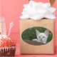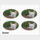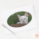 White Savannah Cat Oval Sticker. Background ready for you to add your own images and text.
