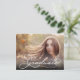 The word "Graduate" in a white script overlays your favorite photo on these SAVE THE DATE postcards for your graduation party or graduation ceremony. We've added an option gray gradient overlay at the bottom so white text is readable over your photo. Add the same or different photo on the back address side - we've added a soft photo overlay to the back image to make the information easier to read. Upload your photo(s), personalize with your information and mail to your guest list so they will save the date for you on their calendar. More script designs in our store.