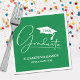 White Script Graduation Cap Green Napkins