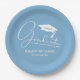 White Script Graduation Cap Powder Blue Paper Plates