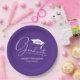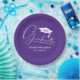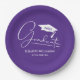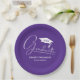 White Script Graduation Cap Purple Paper Plates