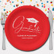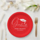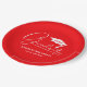 White Script Graduation Cap Red Paper Plates