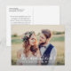 A crisp, romantic alternative to the gold colorway, this full-bleed photo thank you postcard features "love and thanks" in flowing white script lettering that pairs beautifully with any wedding photo palette. The customizable couple names and wedding date are displayed below in clean white type, keeping the design fresh and timeless. Ideal for couples with light and airy, bohemian, or outdoor wedding aesthetics.