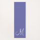 Personalized monogrammed stylish periwinkle yoga mat with a script font design on a printed faux gray linen photo effect background. Trendy typographic style. Periwinkle is the trending color for 2022.