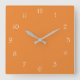White Script Numbers On Orange wccnt Square Wall Clock