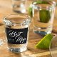A great barware gift for the Best Man in your wedding party! Shot glass with the bride and groom names and wedding date with "Best Man" printed in stylish, white script on a black background. Personalize your shot glass by editing and replacing bride and groom names and wedding date with your own.