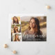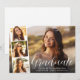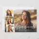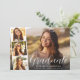 Modern white script photo overlay graduation announcement flat card featuring the graduate's photo overlayed with a strip of three smaller square photos, "Graduate" in a stylish white script, and their name, school and class year in simple white typography.