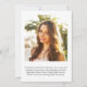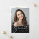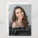 Announce your graduate's achievements with this stylish graduation announcement. Her favorite photo fills the card with "Graduate" written on top in an elegant white script. Underneath, add her name, school and class year. On the reverse side, add an additional photograph and a personalized message.