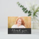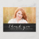 Trendy White Script Rustic Graduation Thank You Card. Design by Elke Clarke © Visit our shop www.zazzle.com/monogramgallery* for more colors and styles. Add your own photo and text. A simple white typography handwritten script font text overlay on a black chalkboard background (printed photo effect) with the words "Thank You". Replace sample photo with your own.