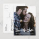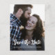 The White Script Save the Date Photo Announcement postcard features a full-bleed engagement photo paired with bold white script typography for strong contrast and clarity, balanced by a clean, minimalist postcard back. The overall look feels joyful and intimate with a relaxed, contemporary finish that suits modern, rustic, and casual wedding celebrations. Easily personalize with your details.