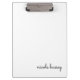 White Script | Stylish Monogram Modern Minimalist Clipboard