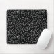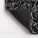 Hand-painted scrolling white curves meet and diverge in this all-over repeat design on a black background. The stylish painting is free flowing and decorative.