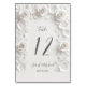 White sculptured 3D roses arched wedding table numbers card.