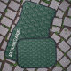 Keep your original floor mats clean when you put down these beach inspired car mats featuring a sea shell outline pattern over a dark green background. The front mat design offers template text that you can keep, personalize, remove and/or edit using the design tool to select a font style, size, and color you prefer.