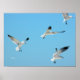 Four white seagulls flying against a blue sky. --- This photograph is copyrighted by me, the photographer.