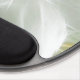 Gel Mouse Pad White Shiny Jasmine, composition inspired from a bright white scented jasmine flower. Its yellow stamen is boldly visible as well as its green leaves. This lovely white jasmine is fully bloomed and looks at the same time both, simple and luxurious. The source image is edited with a special manipulation effect that creates some kind of light sparkles and shows them on the flower petals giving them back the shine they have under the sunlight.