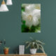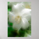 Poster White Shiny Jasmine, composition inspired from a bright white scented jasmine flower. Its yellow stamen is boldly visible as well as its green leaves. This lovely white jasmine is fully bloomed and looks at the same time both, simple and luxurious. The source image is edited with a special manipulation effect that creates some kind of light sparkles and shows them on the flower petals giving them back the shine they have under the sunlight.