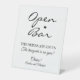 White Signature Script Open Bar Wedding Pedestal Sign