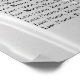 This is an elegant poster with a white silk pattern and light orange pearls.