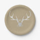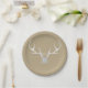 White Silver Antlers & Brown Paper Rustic Wedding Plates. Customize with any text. Matching items are available.
