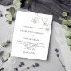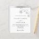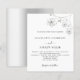 A modern, elegant and minimalist wedding invitation. Front: a white background decorated with silver florals. Personalize and add your names and wedding details. Black colored letters.