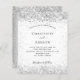 A white background on the front. Decorated with faux silver glitter. Personalize and add your names and party details.