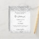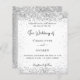 A white background on the front. Decorated with faux silver glitter. Personalize and add your names and party details.