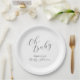 White Simple Minimalist Script Oh Baby Shower Paper Plates