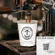 A simple and stylish white business or company paper cup that can be customized with your own logo, QR Code and text. Customize this paper cup and make it your own. Perfect for business promotions, corporate events and meetings, office kitchens and company parties. Simply upload your business logo to replace the placeholder and make your own paper cups.