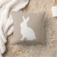 White Sitting Bunny Silhouette On Beige Easter Throw Pillow