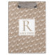 White small flowers on kraft paper rustic floral clipboard. It showcases a pattern of small flowers and leaves and your monogram on kraft style background.