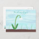 Pretty white snowdrop flower against a pale blue blended sky, with Thinking of you, written across the sky, is printed on custom postcards. The snowdrop is coming up out of brown soil along with a smattering of seedlings. The text can be easily customized on the template form. Thank you for shopping at CherylsArt on Zazzle.