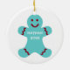 White snowflake blue gingerbread kid custom photo ceramic ornament