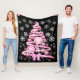 White Snowflake Light Pink Ribbon Christmas Tree Fleece Blanket