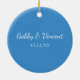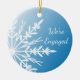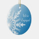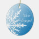 White Snowflake on Blue Engagement Ceramic Ornament
