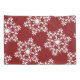 Beautiful Christmas pillowcases with a white snowflake pattern on a crimson red background.