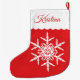 White Snowflake on Red Monogrammed Large Christmas Stocking