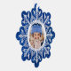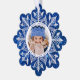 White Snowflake on Sparkly Blue Faux Glitter Photo Ornament Card