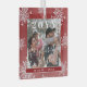 Rustic elegant winter snow red and white family keepsake tree ornament template with falling snowflakes frame. +++++++++++++++++++++ Easy to personalize with your custom photo, text script, family name and year!