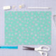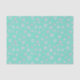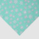 White, snowflakes against a pastel aqua / robin's egg blue background tissue paper, with a slight raised, 3-d look