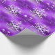 An elegant Christmas wrapping paper design featuring white snowflakes and stars set against a purple, festive background.